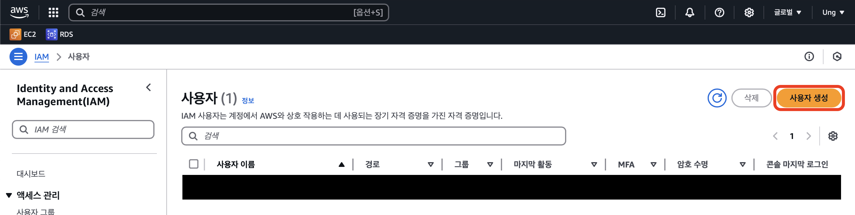 3. IAM -> 사용자 -> 사용자 생성